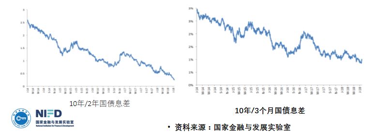 美国经济在川普上台之后,确实在很多方面有好转,但是金融还是不好。我们引述一下美联储经济学家的研究,他们认为在每逢经济衰退之前,美国国债息差会首先倒挂,10年3个月的息差尤其敏感。最近做了一个图,结论是未来一年内美国衰退的概率上升至12.5%,这是金融海啸以来的最高值,现在我们好像在过程之中。