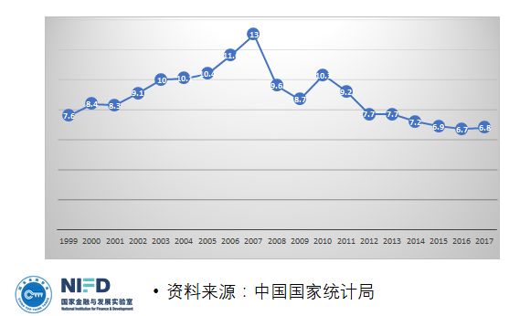 但是金融刺激是毫无疑问的,那一年96000亿新增贷款,从那之后基本上就是10万亿左右,所以从那之后财政刺激未必会提高杠杆率,但是金融自己就一定会提高杠杆率,可以看我们非金融部门的杠杆率在09年有一次迅速的提高。然后慢慢就趋缓,2017年略降,2018年略微有一点上升。